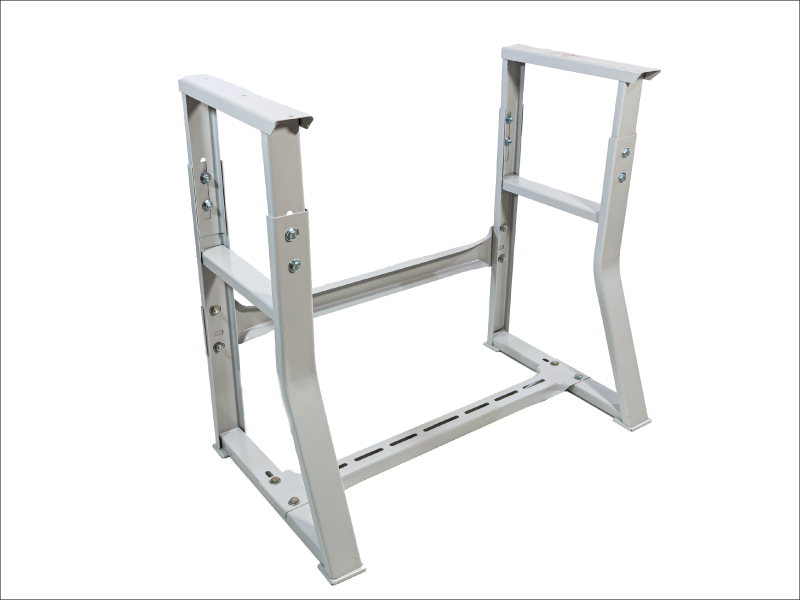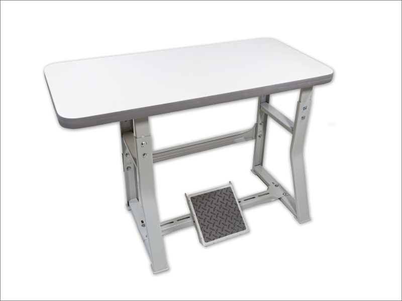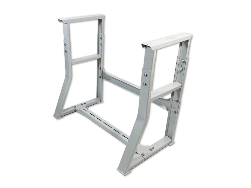Conta com duas travessas, sendo que a inferior disponibiliza várias posições para afixação do pedal e pedalete de máquinas de costura e também a regulagem de altura.